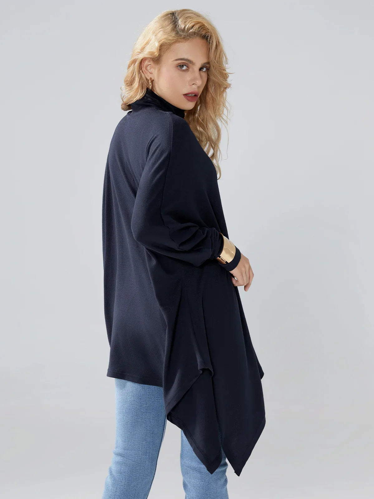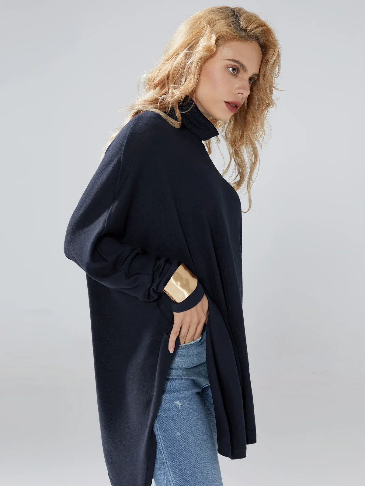 Deze moderne coltrui met hoge kraag en volumineuze zoom is een geweldige keuze voor iedereen die waarde hecht aan stijl en comfort. De hoge kraag voegt elegantie en verfijning toe aan de uitstraling, terwijl de brede zoom een modern en modieus silhouet creëert. Deze coltrui past gemakkelijk in alledaagse kledings, of het nu voor werk is of voor een ontmoeting met vrienden.