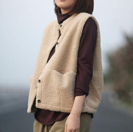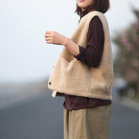 Trendy Mouwloze Jas in Neutrale Kleur met Zakken – Grote Maten